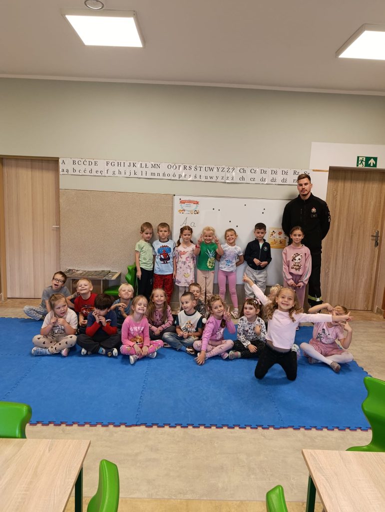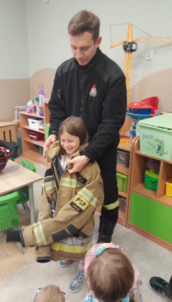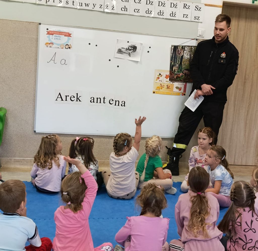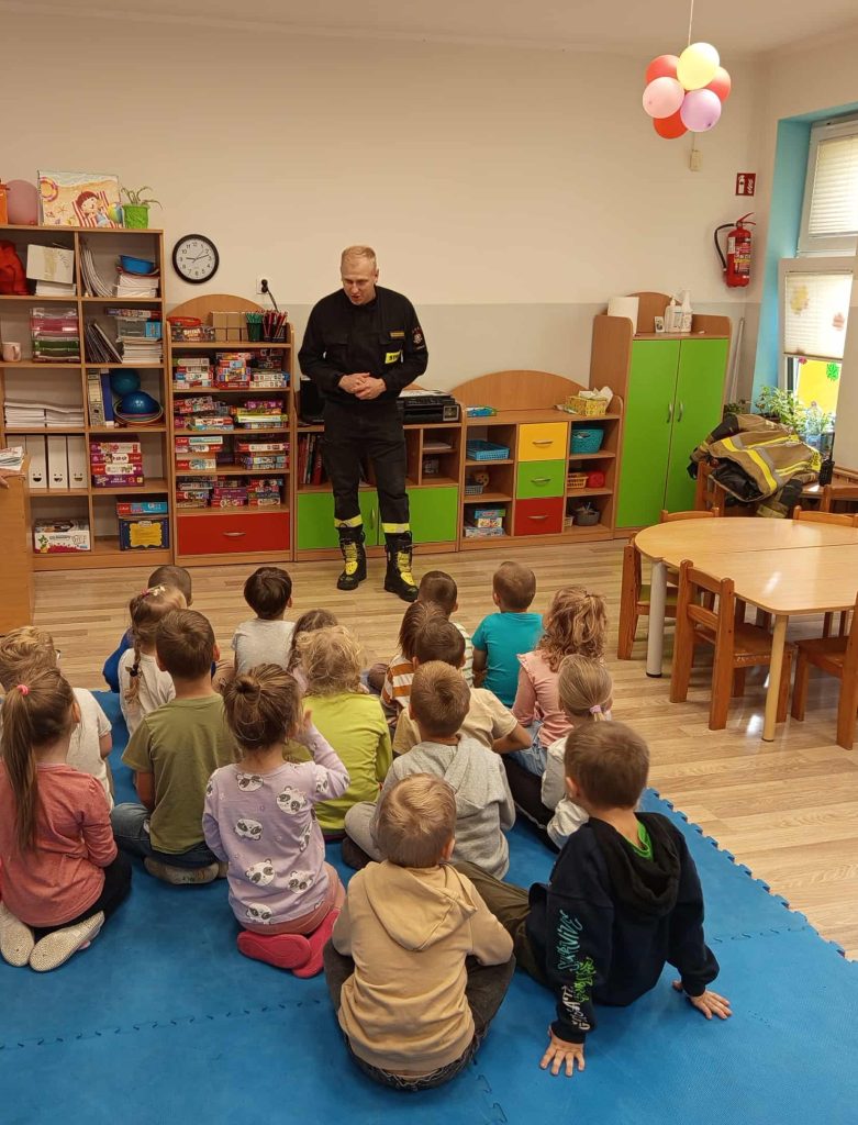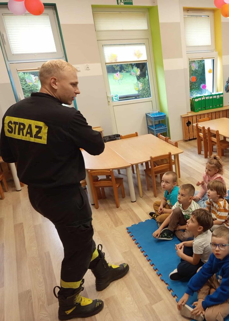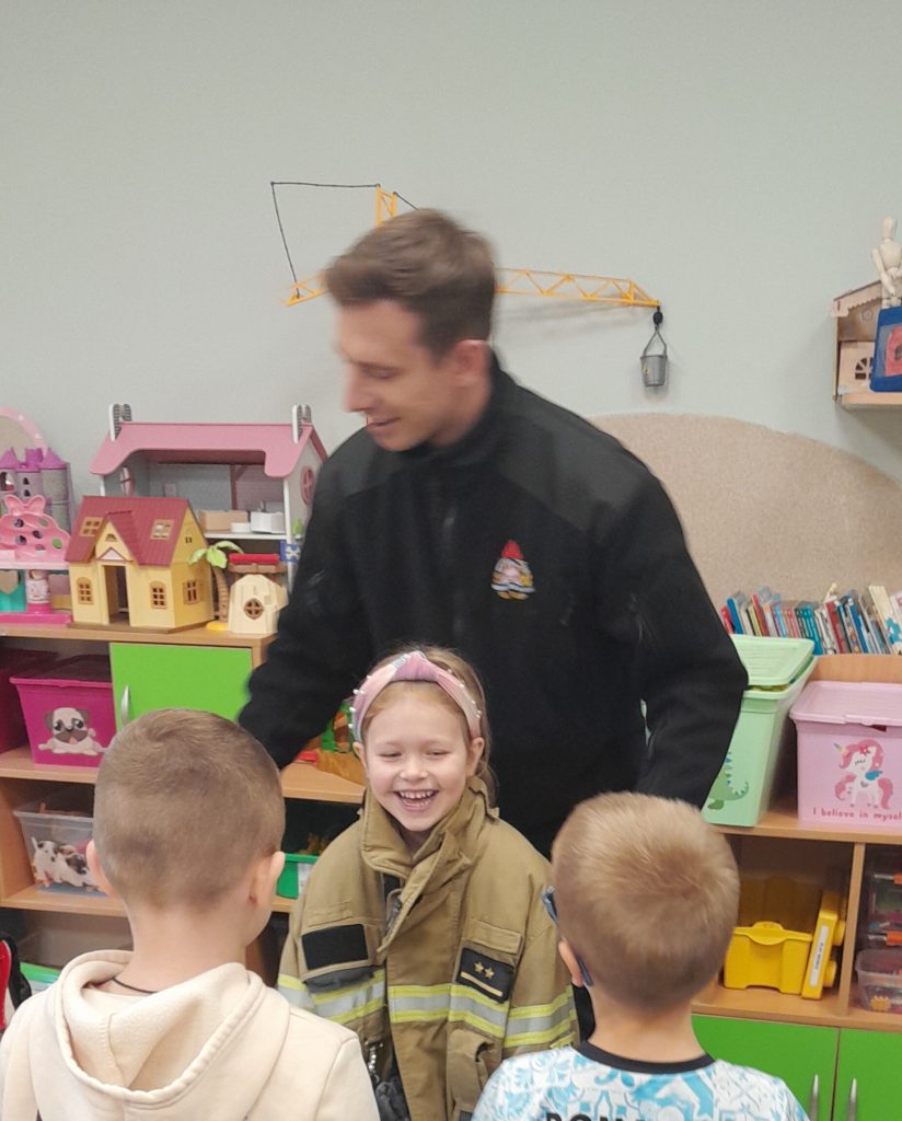 Dziś nasze przedszkolaki miały wyjątkowych gości — odwiedzili nas strażacy, którzy z pasją opowiedzieli o swojej pracy, zadaniach i wyzwaniach, jakie podejmują każdego dnia. Dzieci miały okazję zobaczyć z bliska specjalistyczne wyposażenie. Podczas spotkania przypomniano również: numer alarmowy 112 — każdy przedszkolak już go zna! podstawowe zasady bezpieczeństwa — jak zachować się, gdy jesteśmy świadkami wypadku.