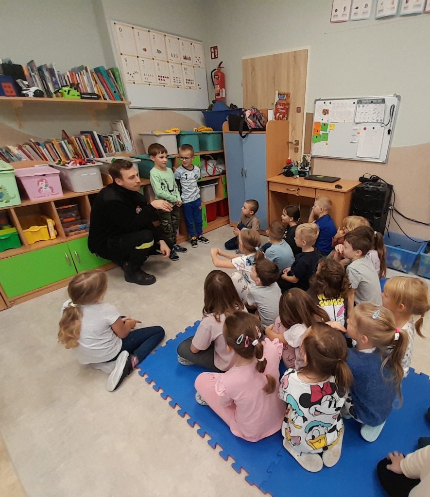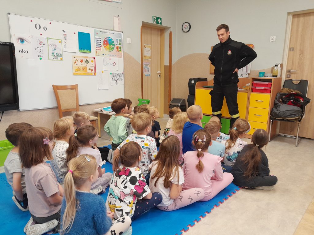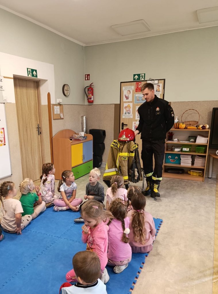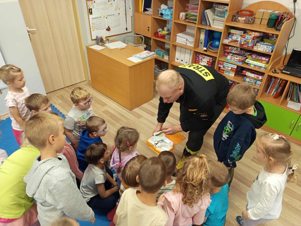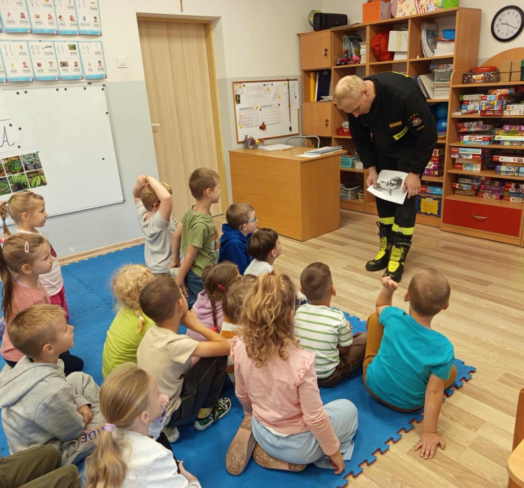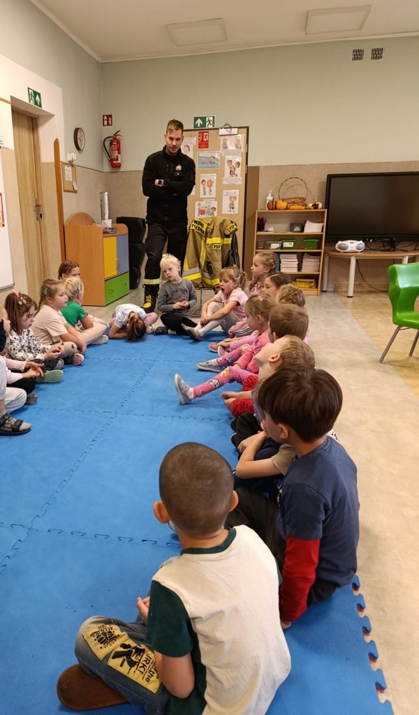 Dziś nasze przedszkolaki miały wyjątkowych gości — odwiedzili nas strażacy, którzy z pasją opowiedzieli o swojej pracy, zadaniach i wyzwaniach, jakie podejmują każdego dnia. Dzieci miały okazję zobaczyć z bliska specjalistyczne wyposażenie. Podczas spotkania przypomniano również: numer alarmowy 112 — każdy przedszkolak już go zna! podstawowe zasady bezpieczeństwa — jak zachować się, gdy jesteśmy świadkami wypadku.