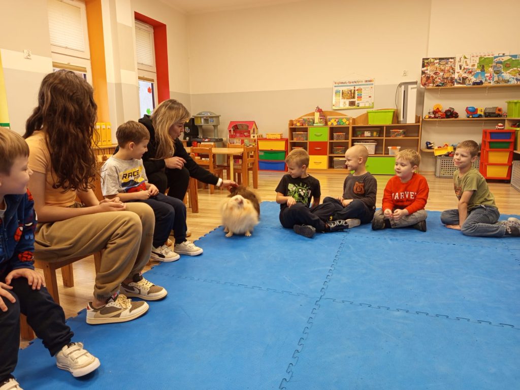 To było niezwykle ciekawe i pełne radości spotkanie, które pokazało, że odpowiedzialność i troska o zwierzęta to piękna lekcja empatii. Serdeczne podziękowania dla pani Kasi, Amelki oraz naszych czworonożnych przyjaciół za tę wyjątkową wizytę!